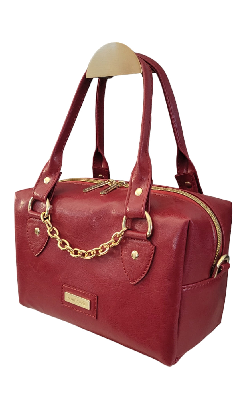 Beautiful cherry red faux leather with gold hardware. Click below for all the photos and details.