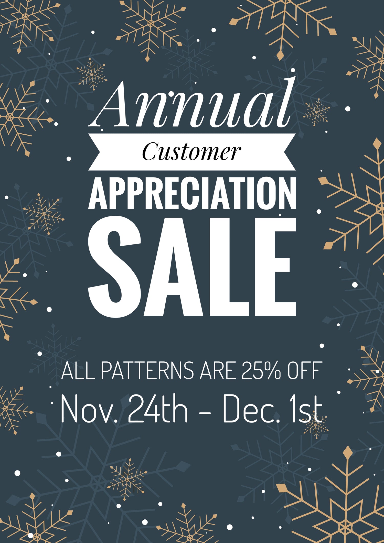 It's that time of year again, when I say thank you to all my wonderful customers! Please enjoy the biggest discount of the year and grab some patterns that you may have been eyeing but haven't purchased yet. Treat yourself!