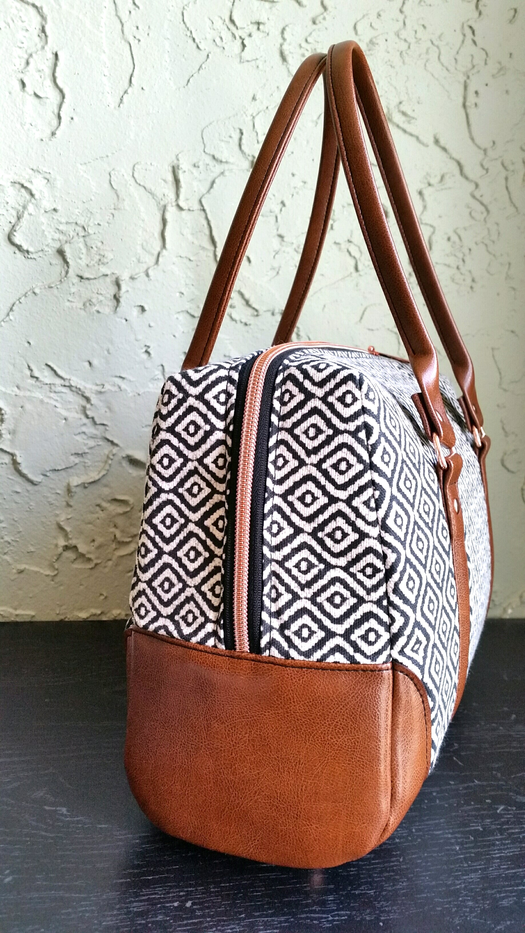 - This bag was designed to be made with cotton, canvas, or similar weight fabric as the main exterior fabric and the contrast fabric as vinyl, cork, or leather. However, there are notes on the Fabric and Interfacing Cut List for making the bag from all fabric.