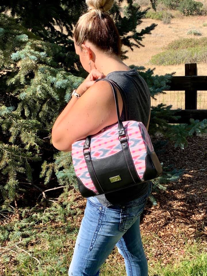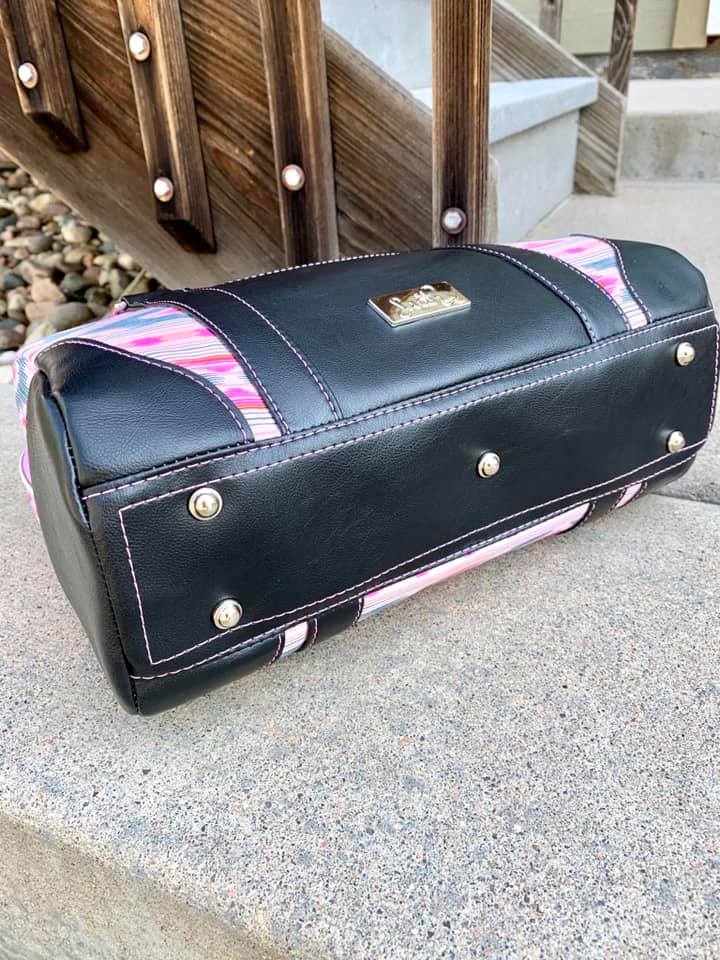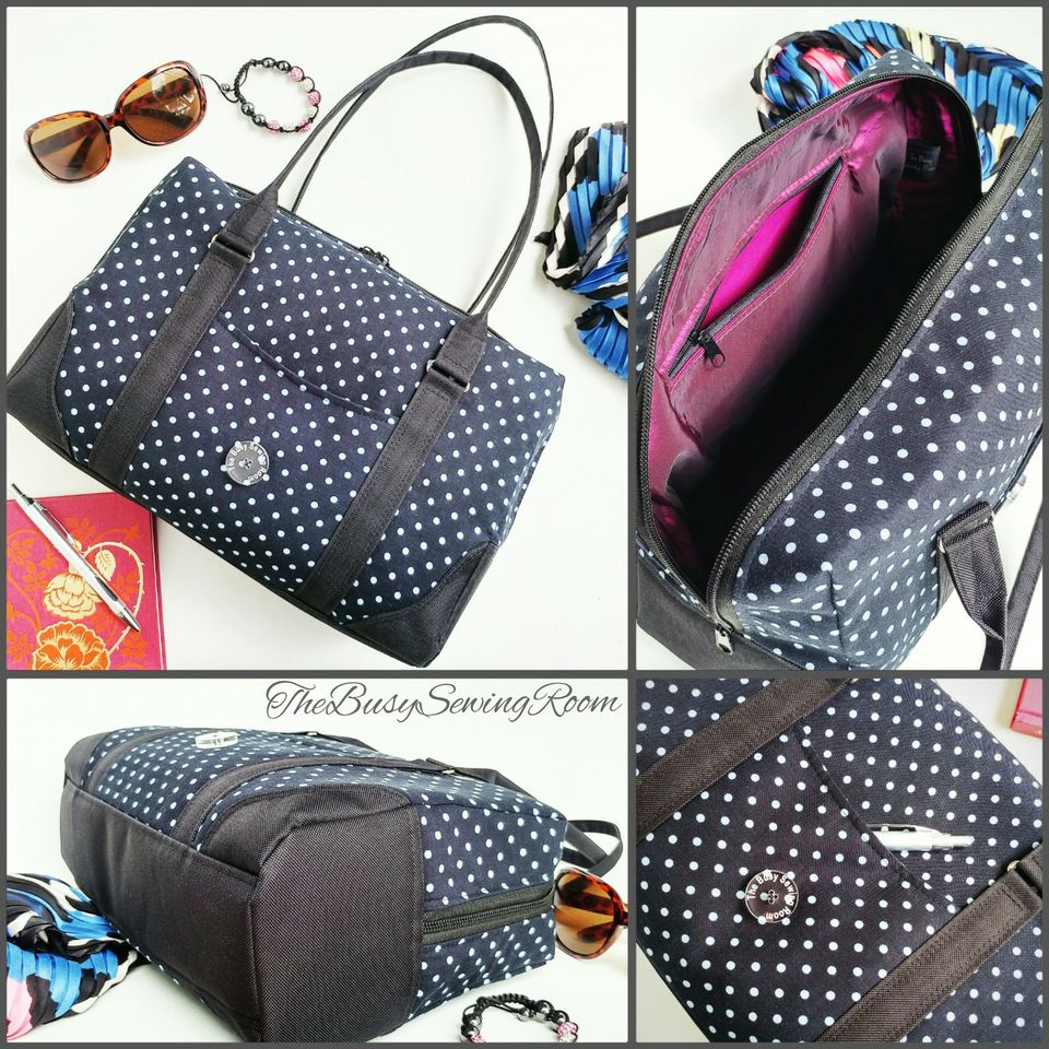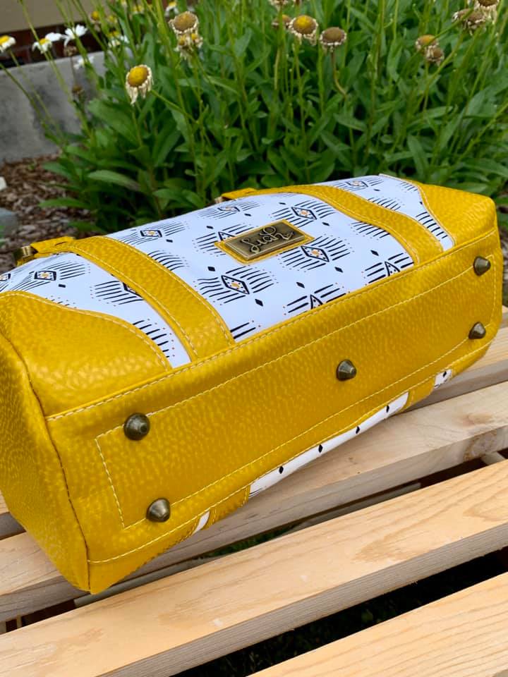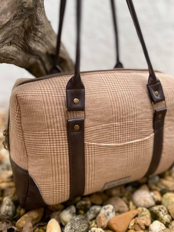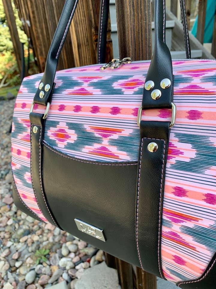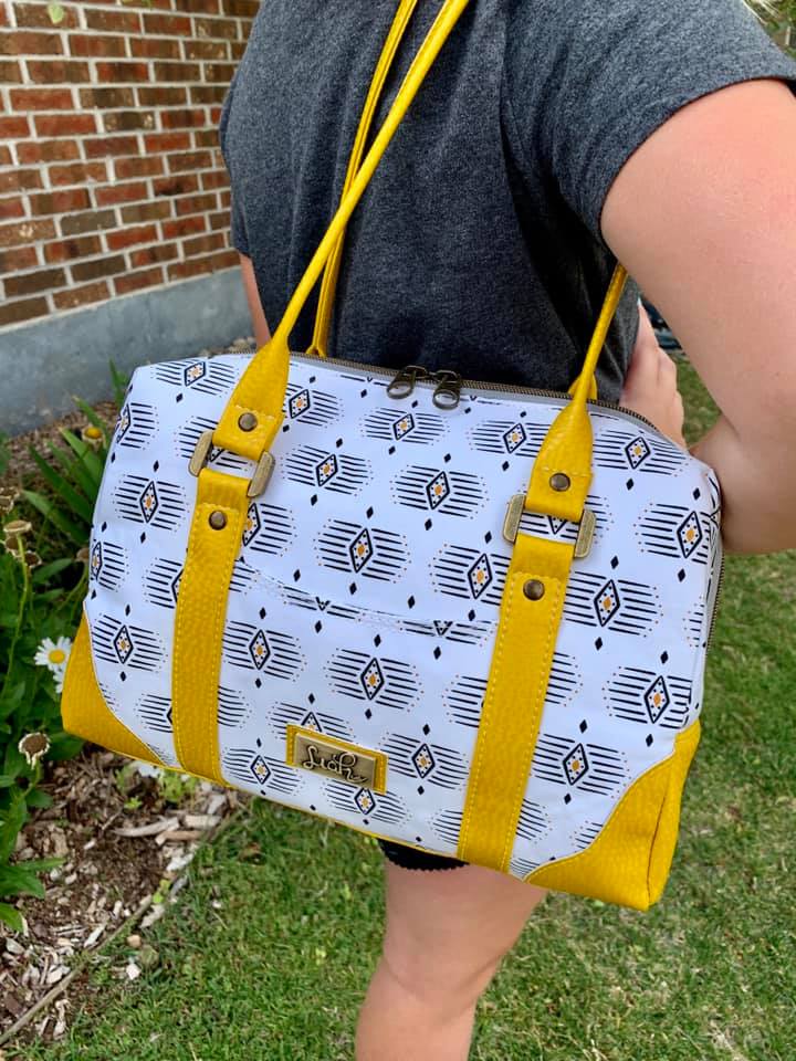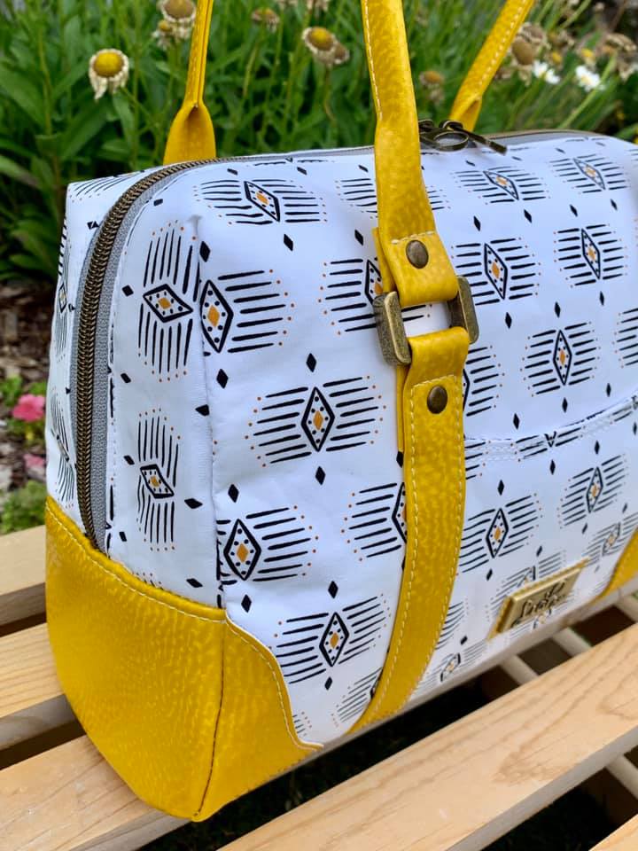 Meet The Colette. She's a very classy lady - shapely, but sophisticated. Her gently curved overlays and faux rolled straps softened the boxy design. With a 20-inch zippered top, she opens to a spacious interior, with a divided, trimmed slip pocket on one side and a trimmed zipper pocket on the other. The accented side gussets and the overlays match meticulously for a very high-end look. Or choose one fabric for the overall design and use the flat strap option. With minimal hardware, this pattern really highlights the bag design and the bag maker's skills. You'll be making this pattern over and over.